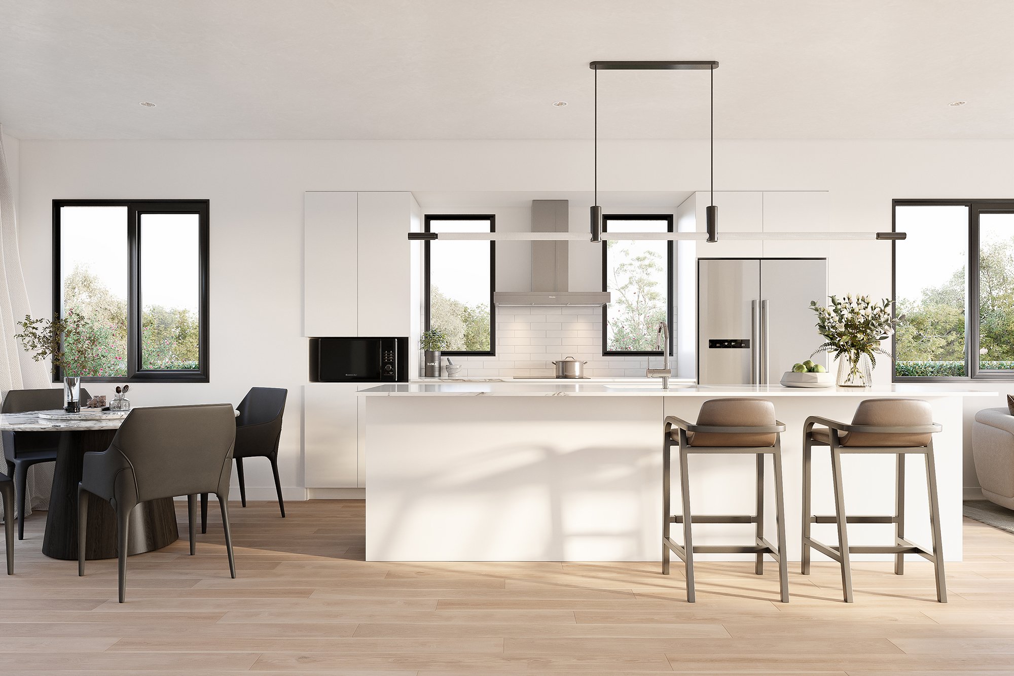 Our exterior renders focus on realistic lighting, accurate material representation, and strong composition to highlight the architectural character of the development, while our interior visualisations emphasise open plan living, natural light, and spatial depth to help buyers clearly envision daily life within the homes. Through detailed architectural rendering and property marketing visuals, we supported Universal Homes in presenting Owairaka as a modern, connected, and design driven new housing development in Auckland.